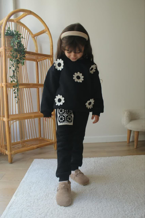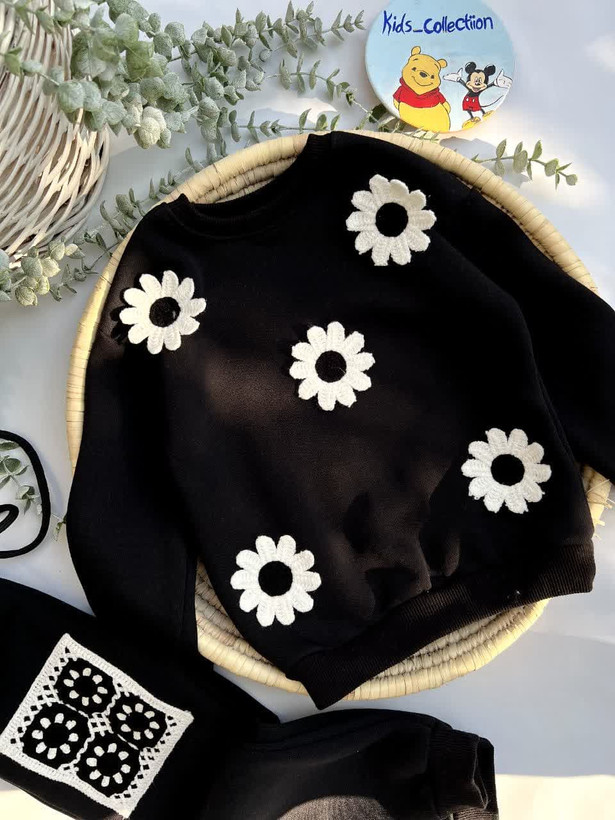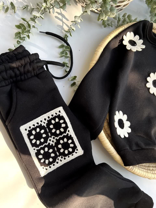 ست بلوز و شلوار دخترانه داخل کرکی ترک طرح گل برجسته