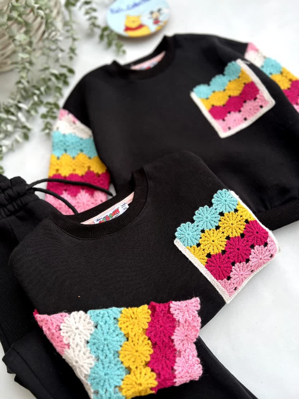 ست بلوز و شلوار دخترانه داخل کرکی ترک طرح قلاب بافی