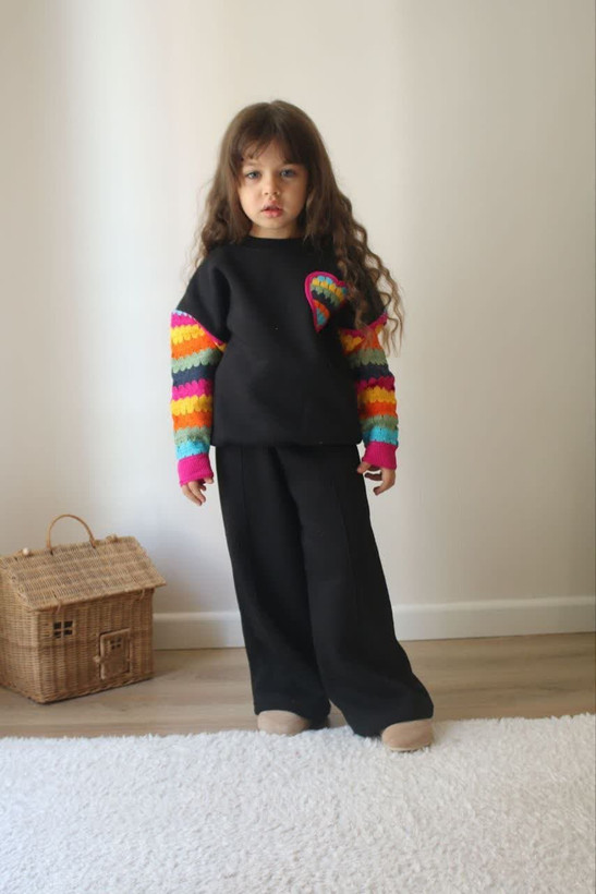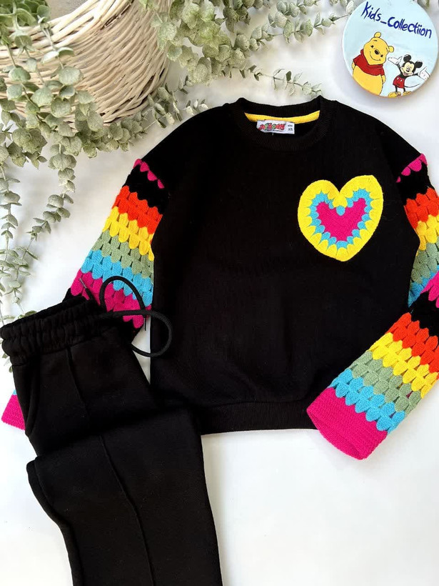 ست بلوز شلوار دخترانه ترک داخل کرکی طرح قلب قلاب بافی
